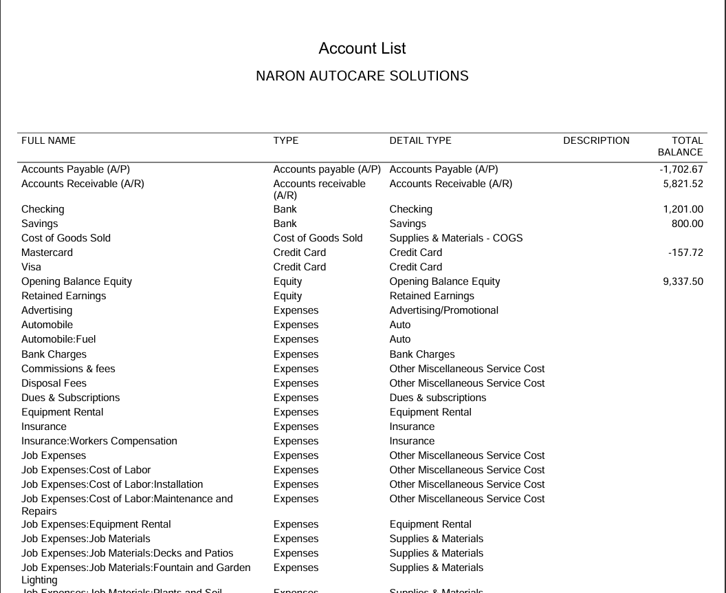 charts of accounts