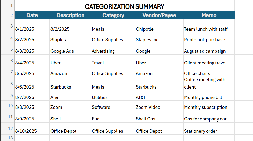 categorization summary