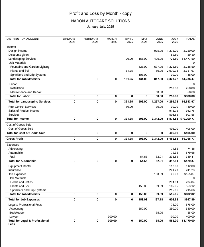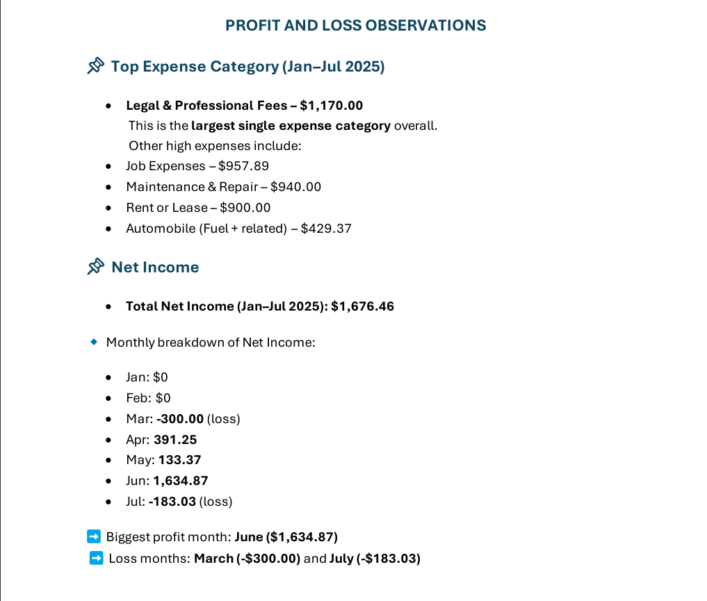 Profit and loss reports