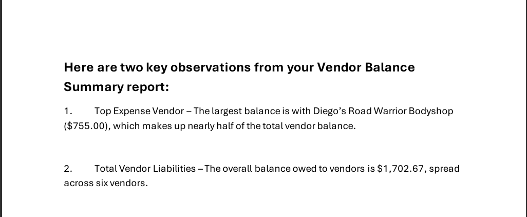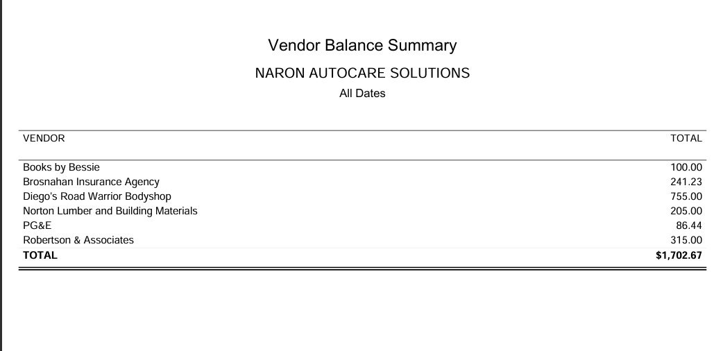 vendor summary balance