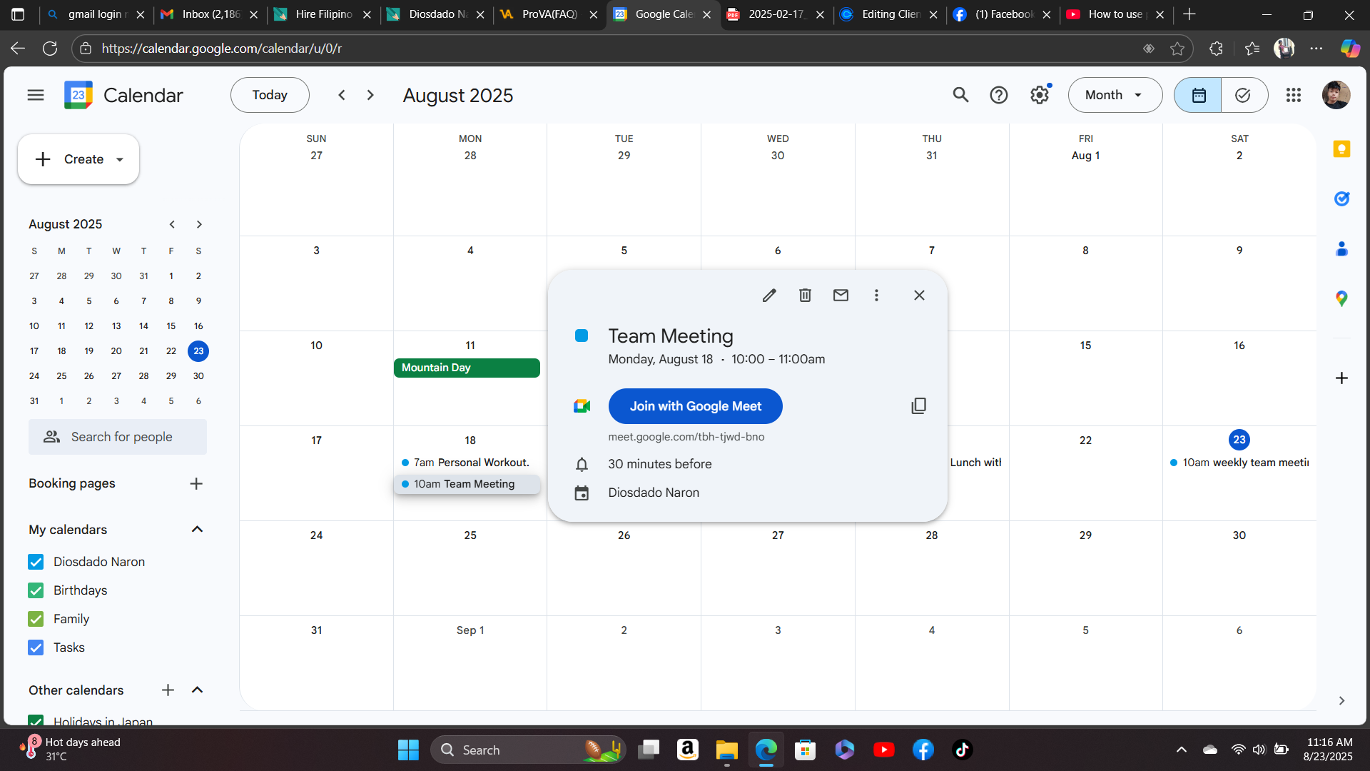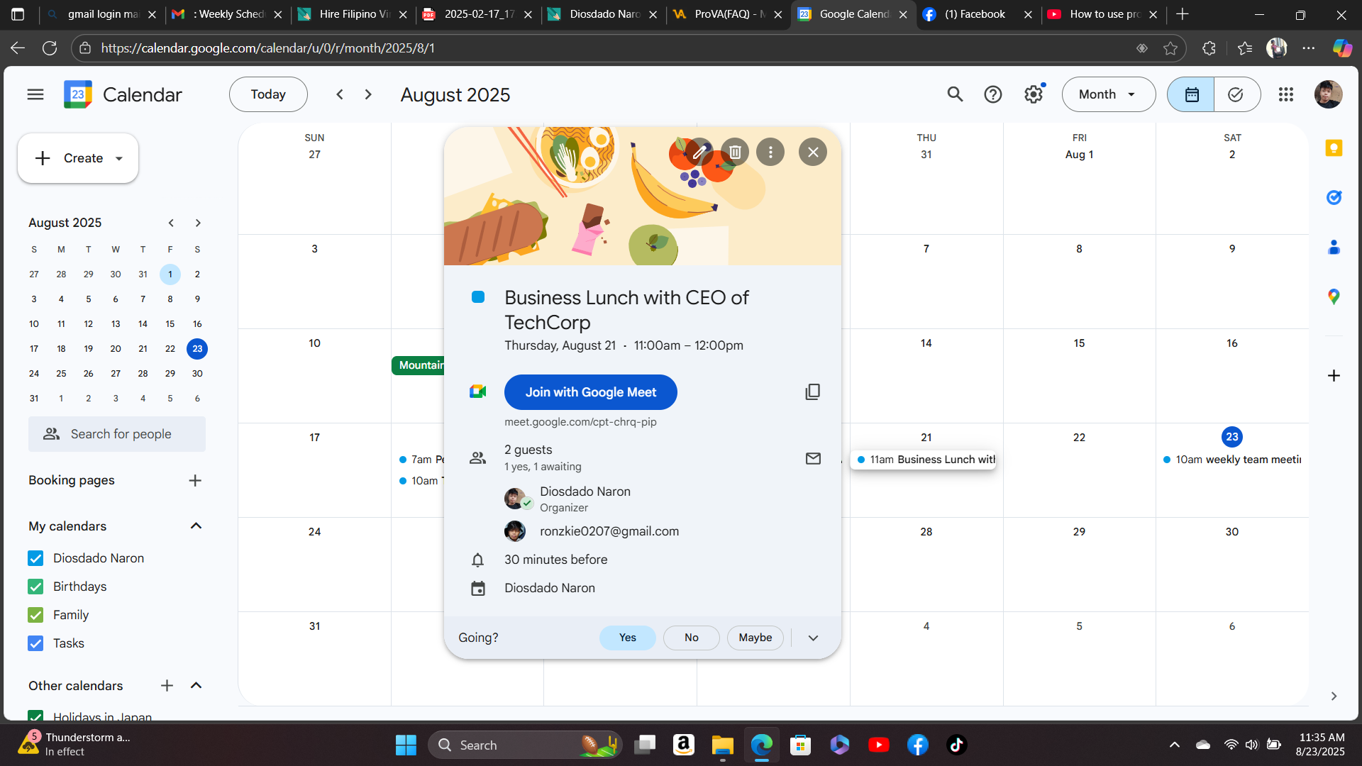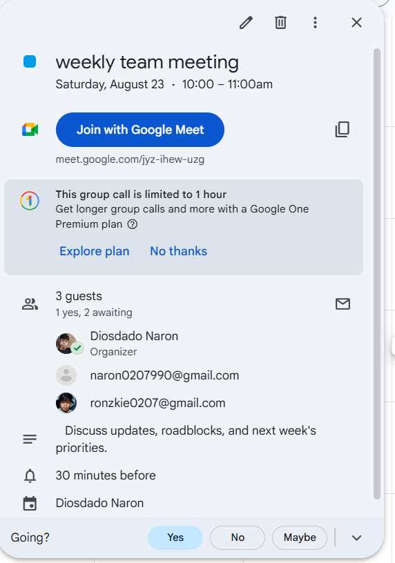 bussiness meeting schedule