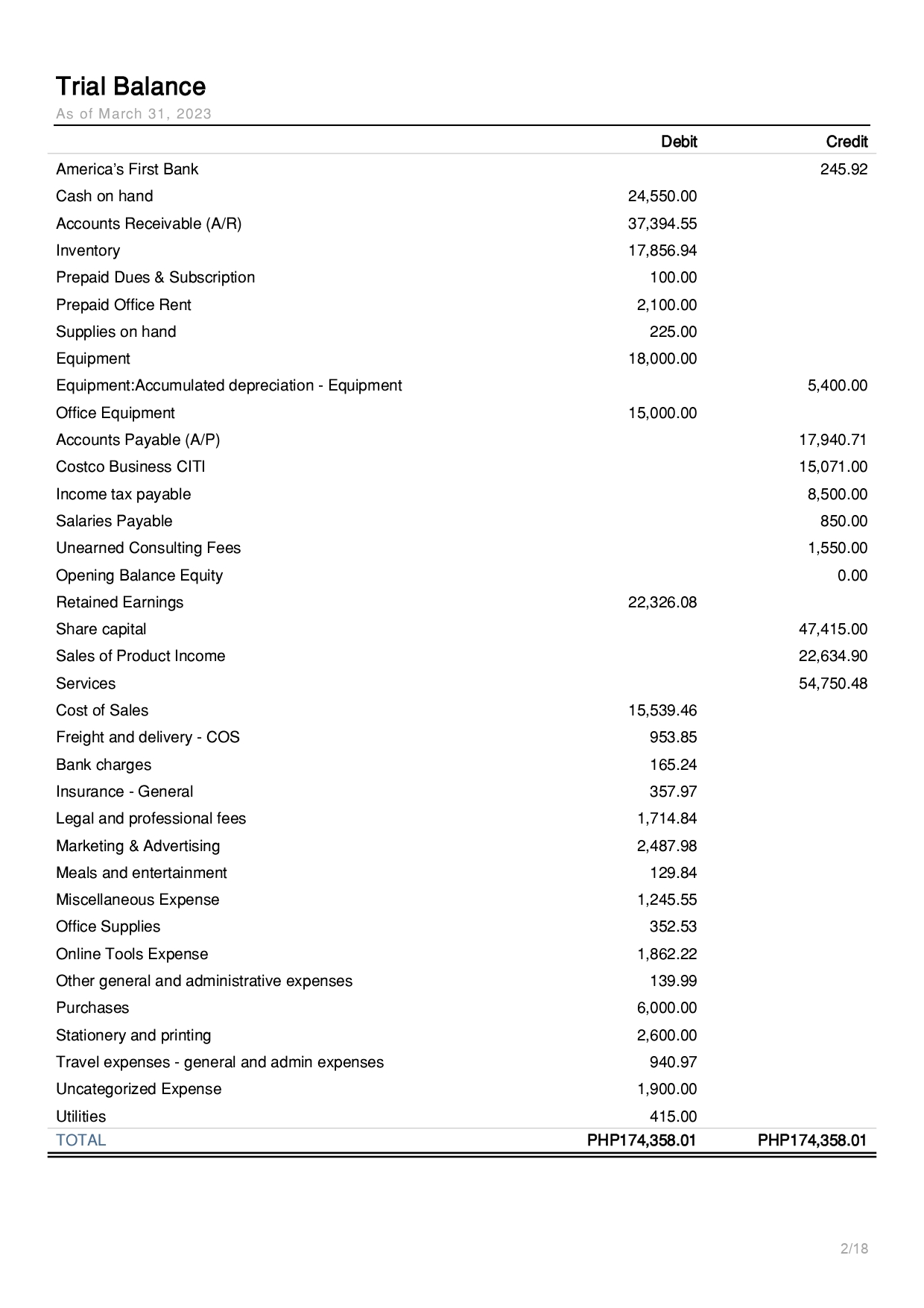 Trial Balance Report