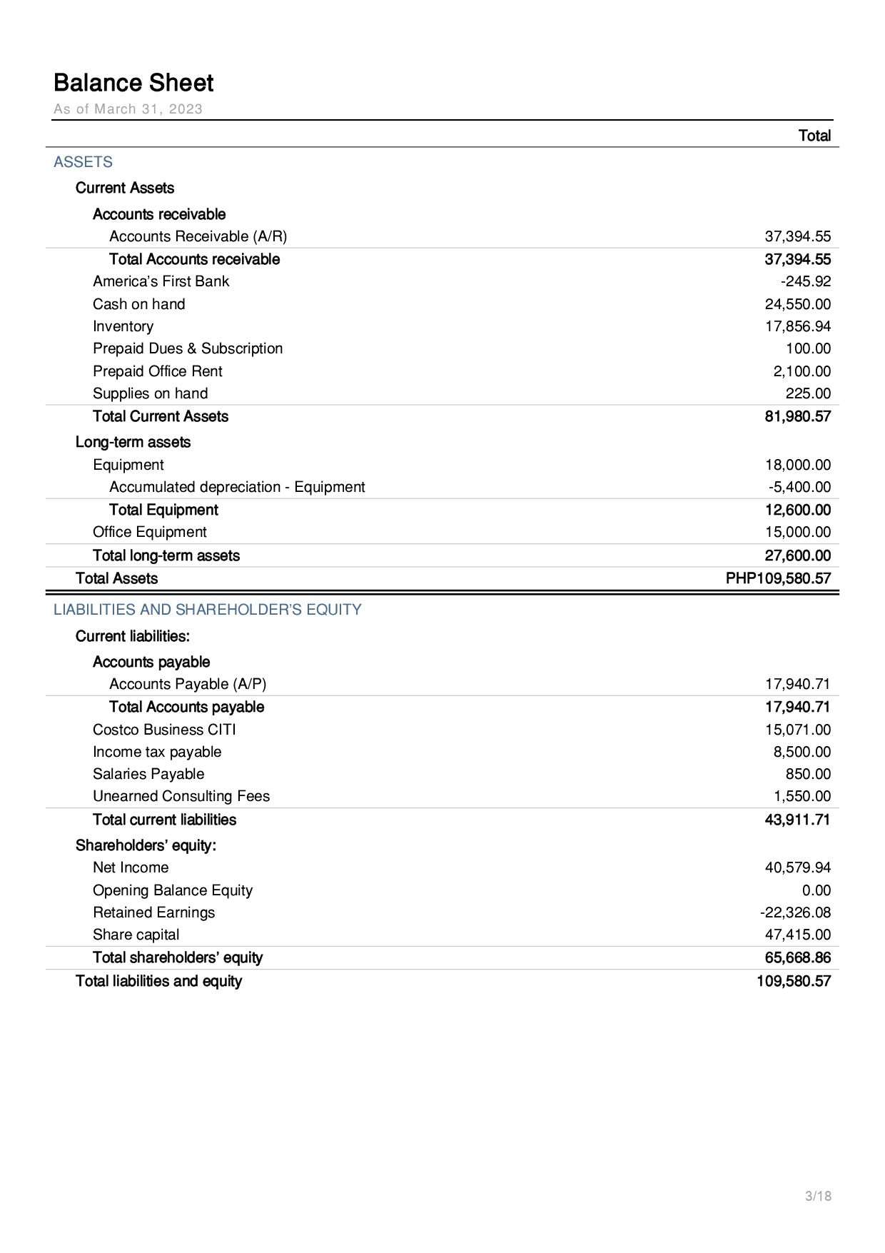 Balance Sheet Report
