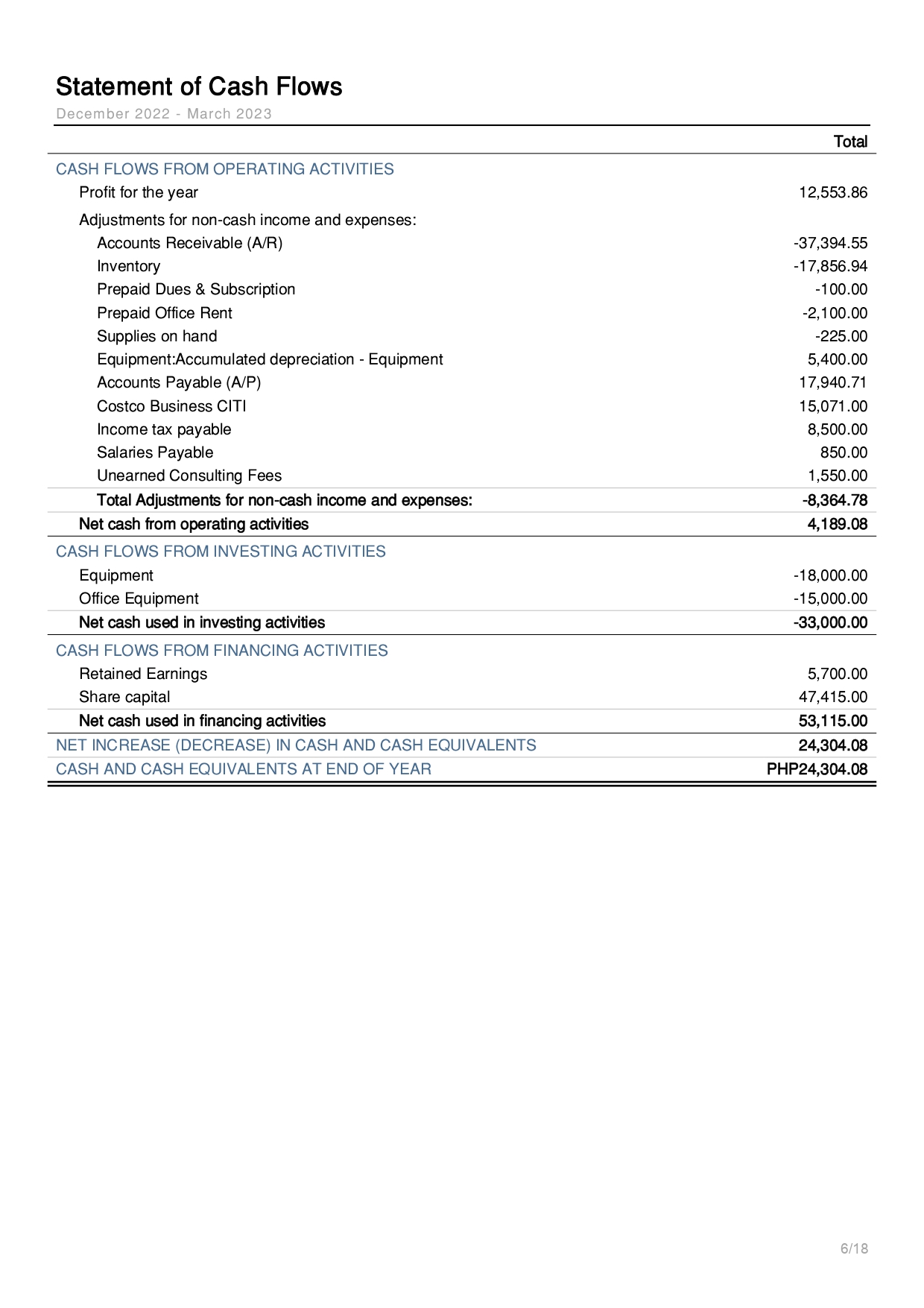 Statement of Cash Flows Report