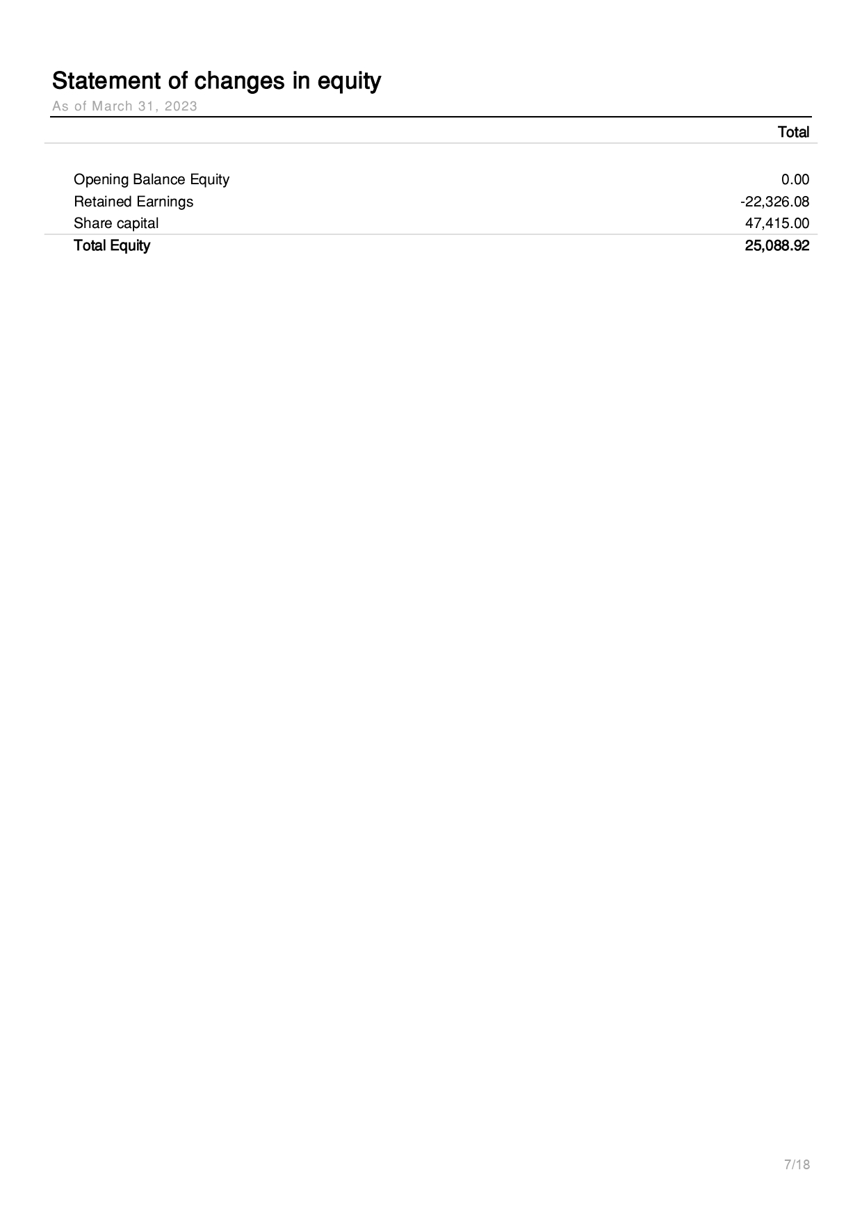 Statement of changes in equity Report