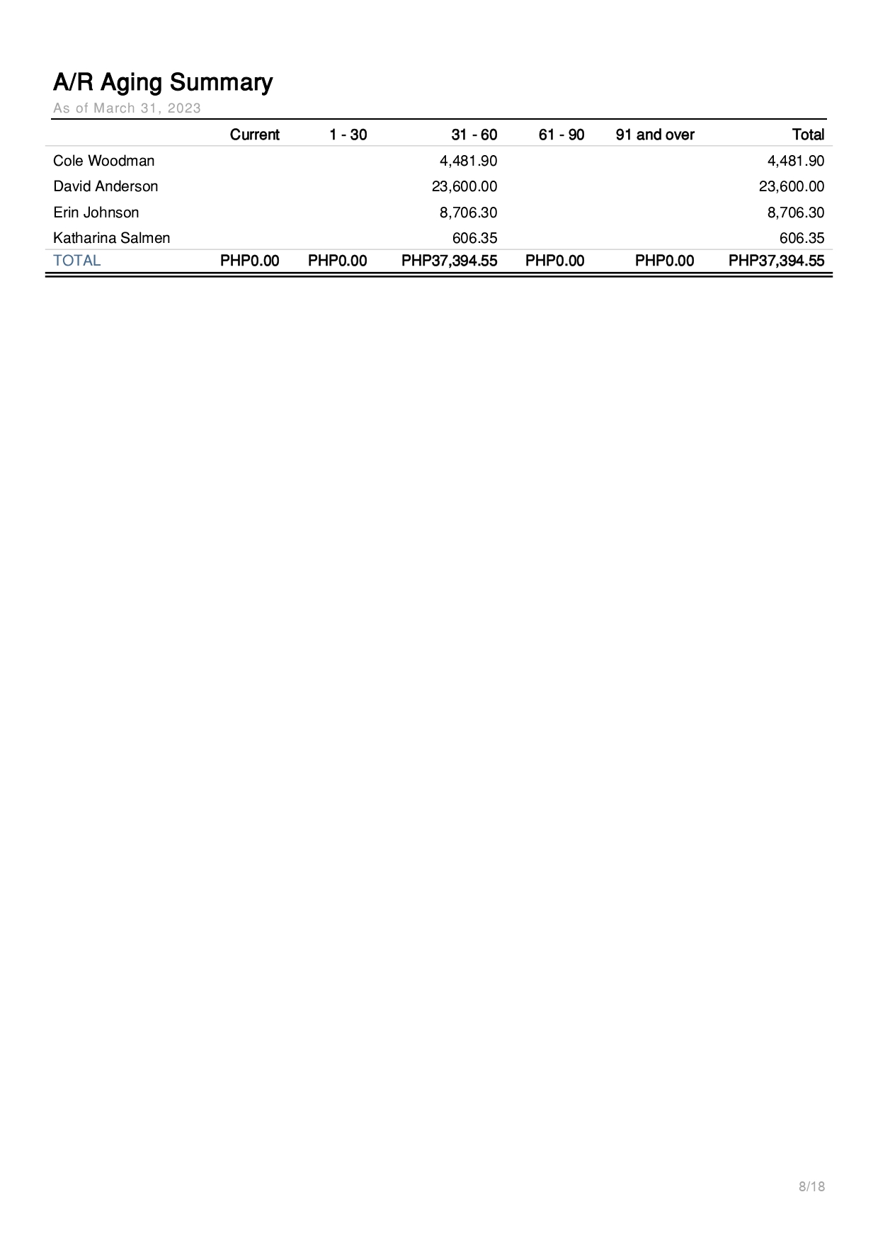 AR Aging Summary Report