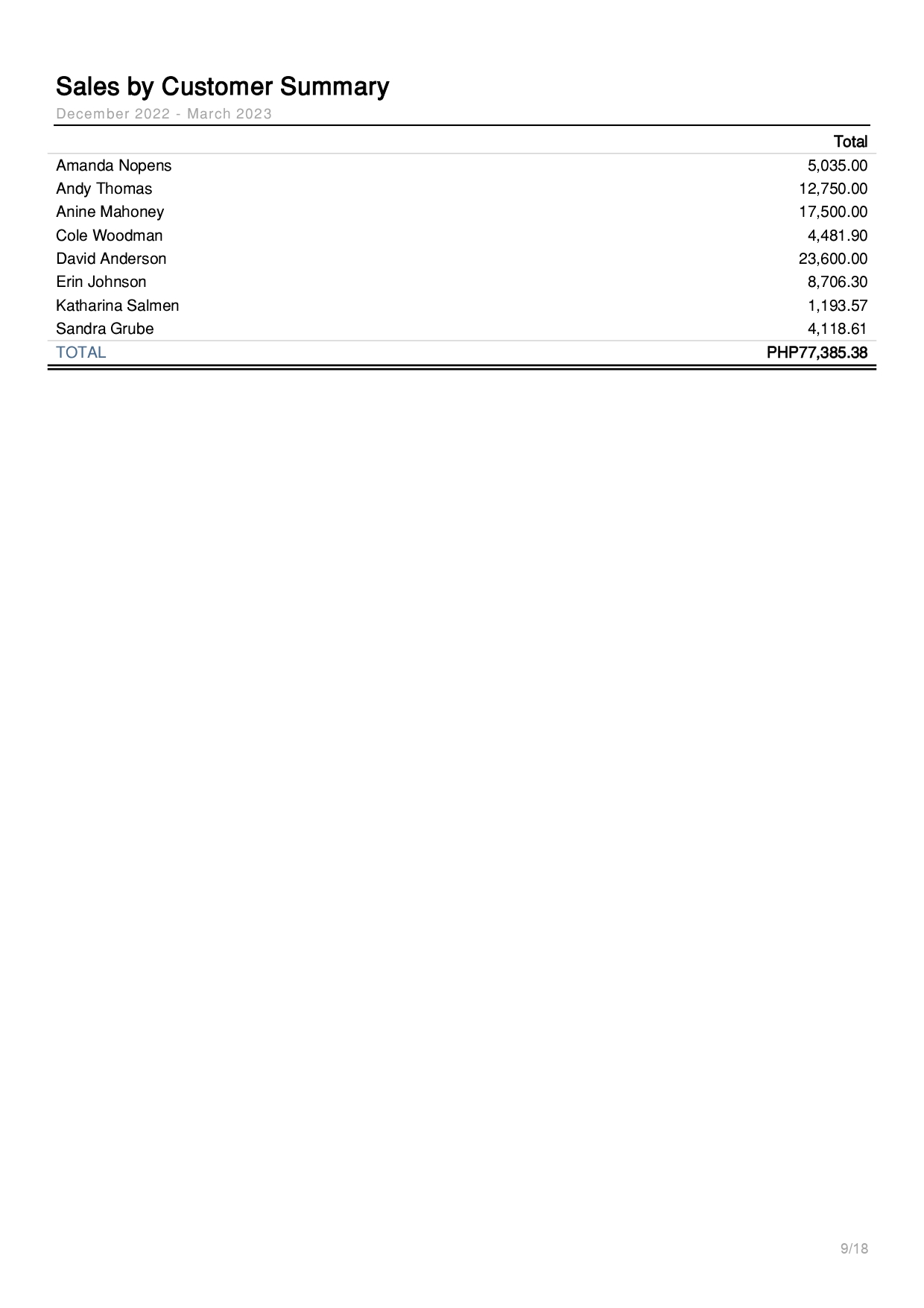 Sales by Customer Summary Report