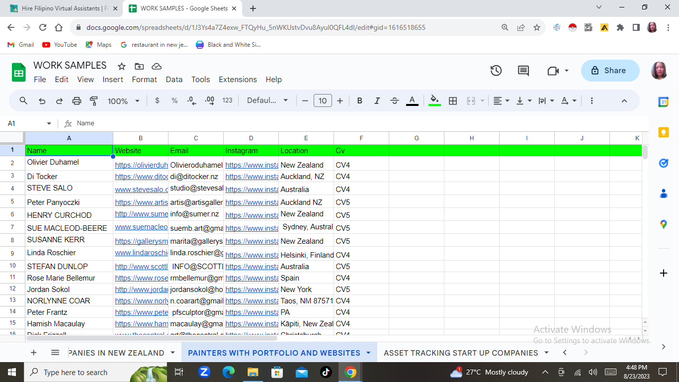 Painters with Portfolio and Websites