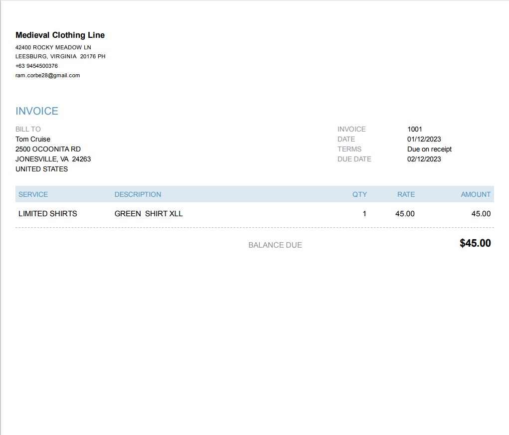 INVOICE 1001 (SAMPLE ONLY)