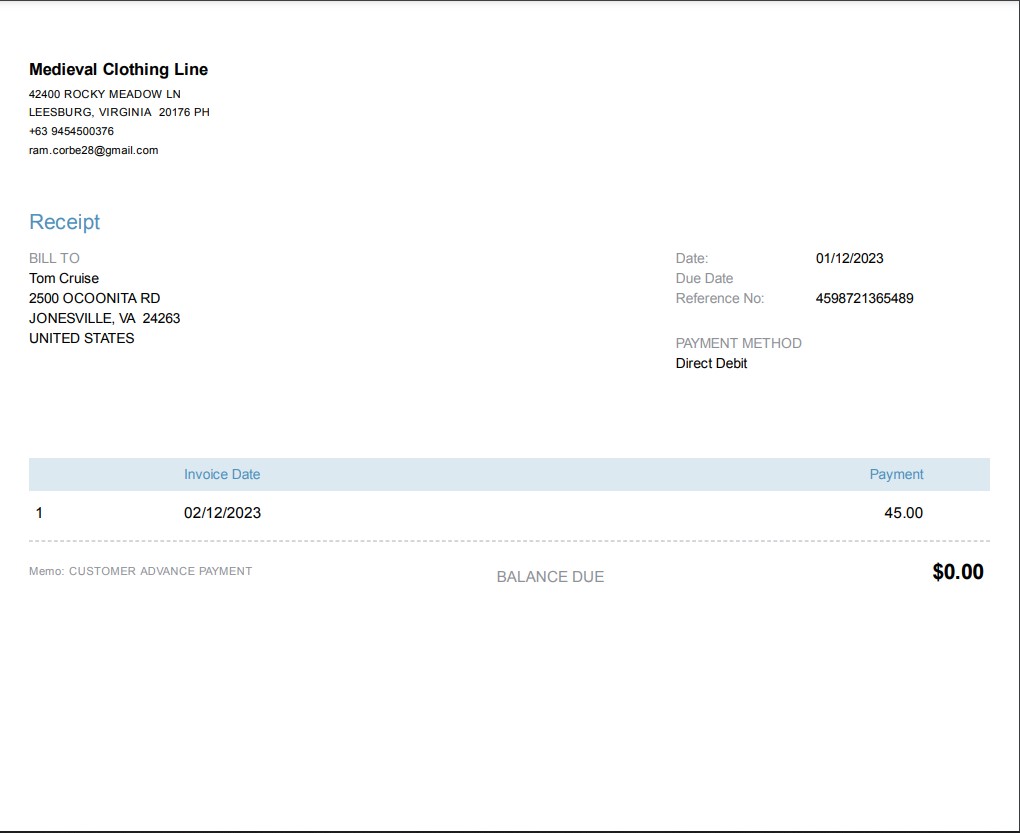 RECEIVED PAYMENT 1001 (SAMPLE ONLY)