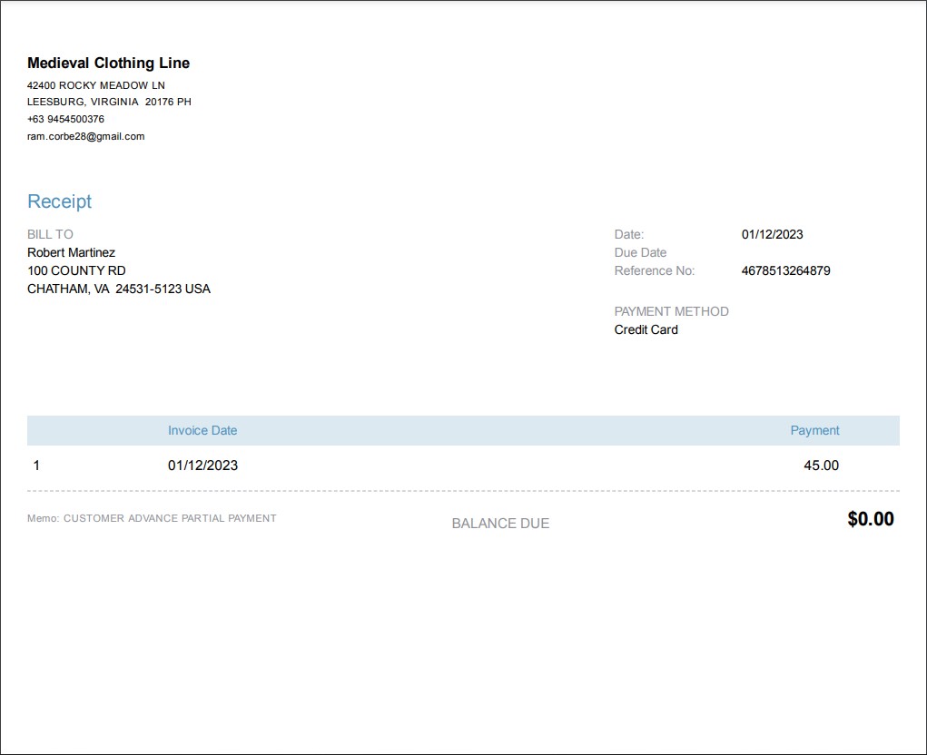 RECEIVED PAYMENT 1003 (SAMPLE ONLY)