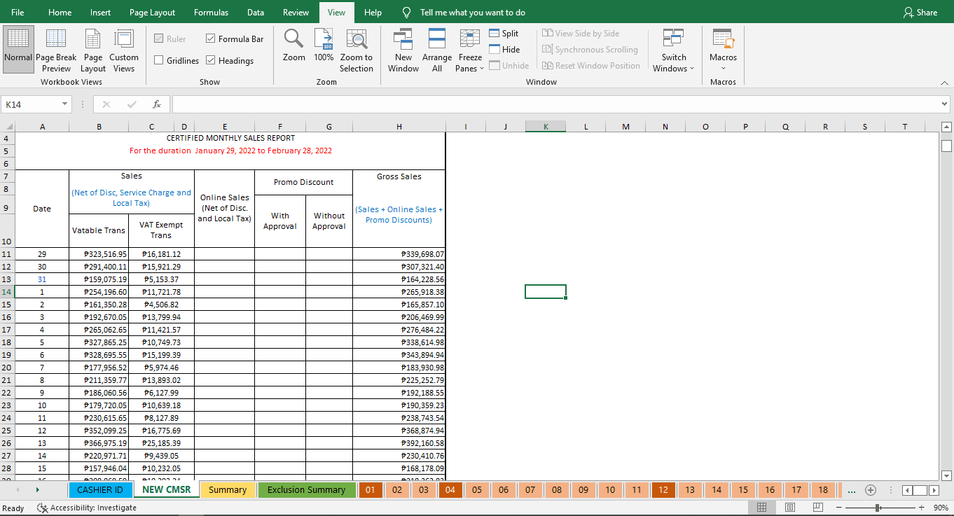 Creates monthly sales report needed for the computation of the monthly rental expense of stores
