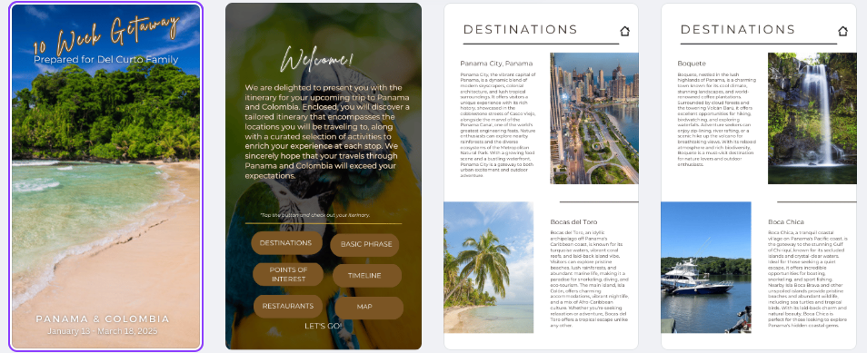 I specialize in creating customized travel itineraries tailored to clients' preferences and needs. Using Canva and other planning tools, I design well-structured, visually appealing, and easy-to-follow itineraries that include essential details such as destinations, accommodations, transportation, activities, and dining recommendations. My goal is to ensure a seamless travel experience by providing organized schedules, helpful travel tips, and curated recommendations that align with the client's budget and interests. Whether it's a relaxing getaway, an adventure-packed trip, or a business travel plan, I craft itineraries that enhance convenience, maximize experiences, and eliminate the stress of planning.