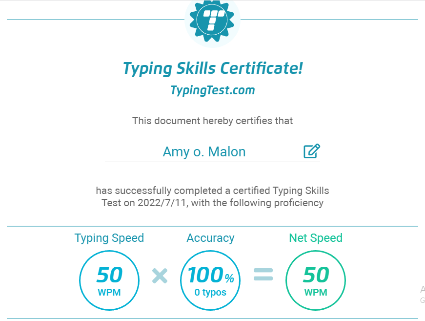 Typing Test Certificate