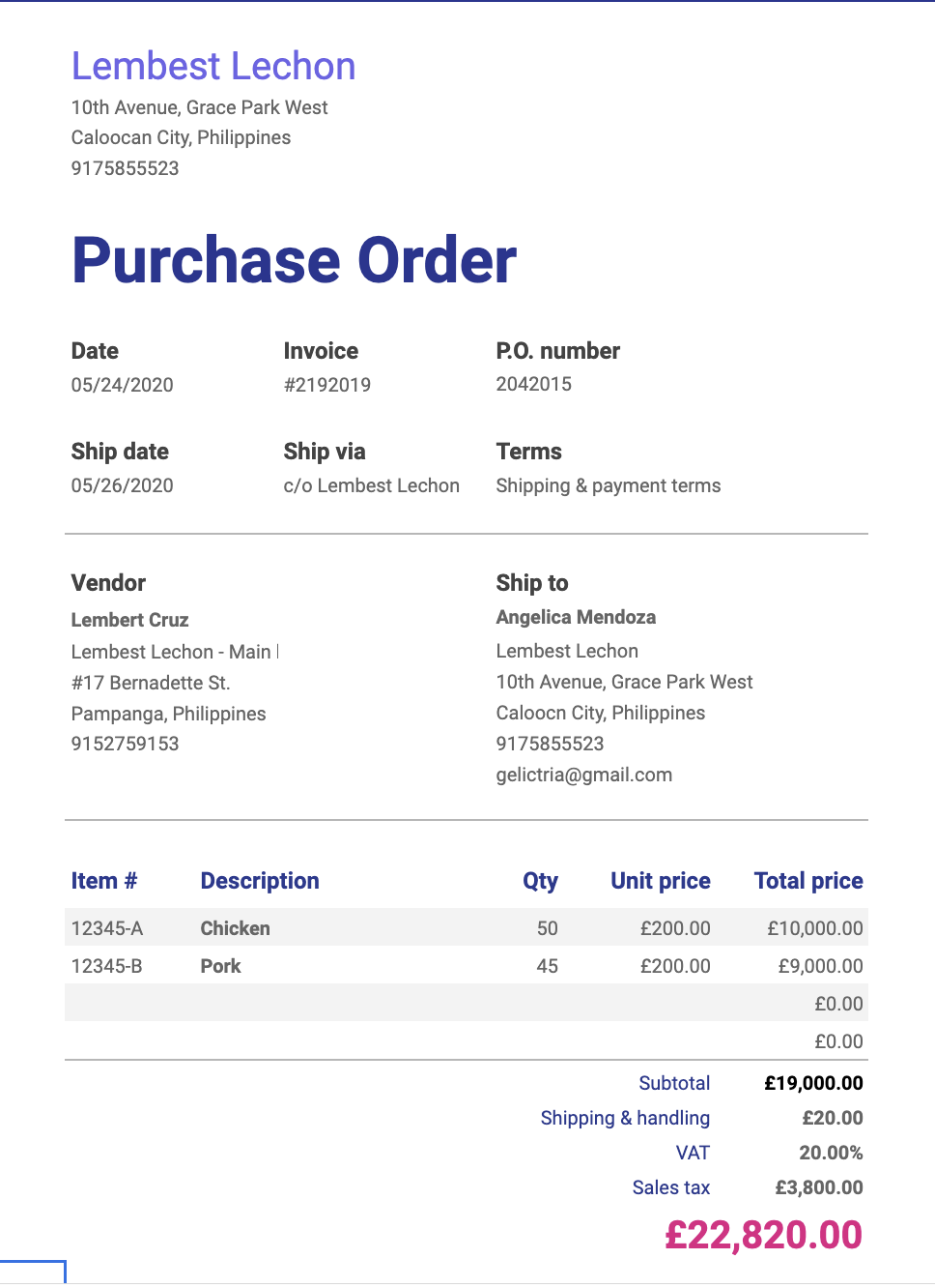 Sample purchase order