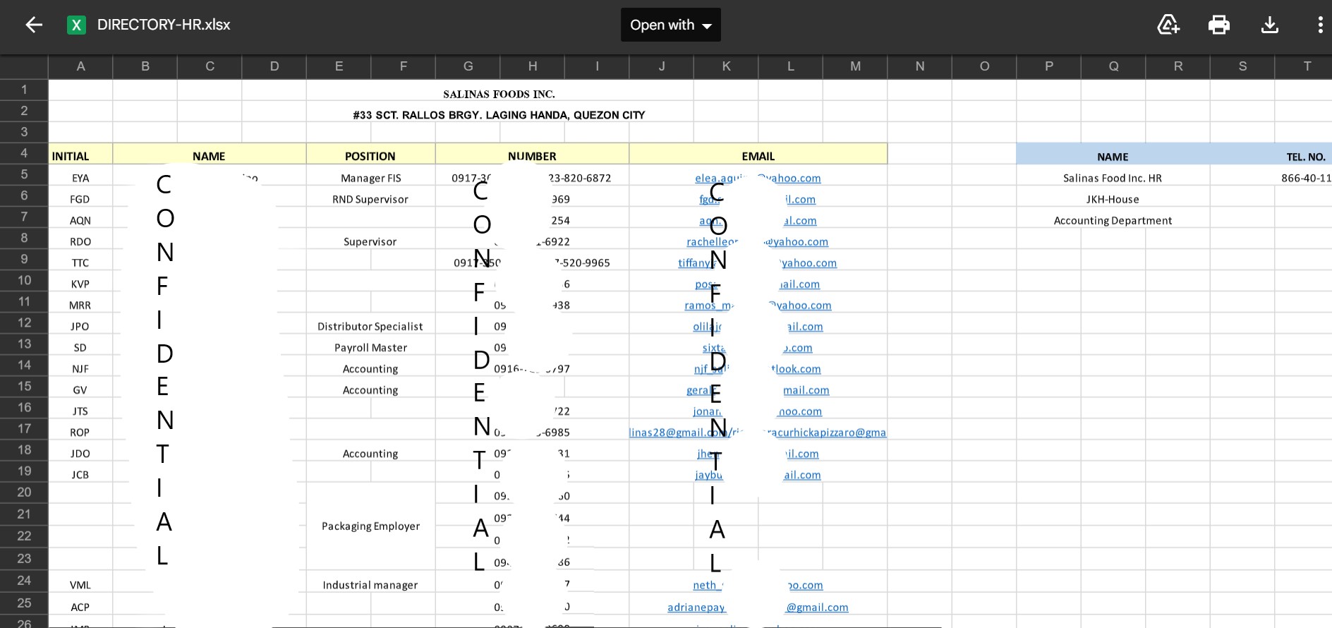 DIRECTORY OF COMPANY