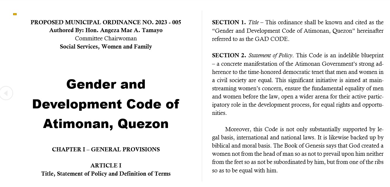 To fully support this renewed call I would like to propose an Ordinance called RV (Rape Victim) Ordinance of Atimonan, Quezon. This is to provide the RVs financial assistance on their medical, legal fees and to provide a temporary shelter for their protection. Also I would like to bring this movement in the Barangays, by equipping the Sangguniang Barangay on this matter.