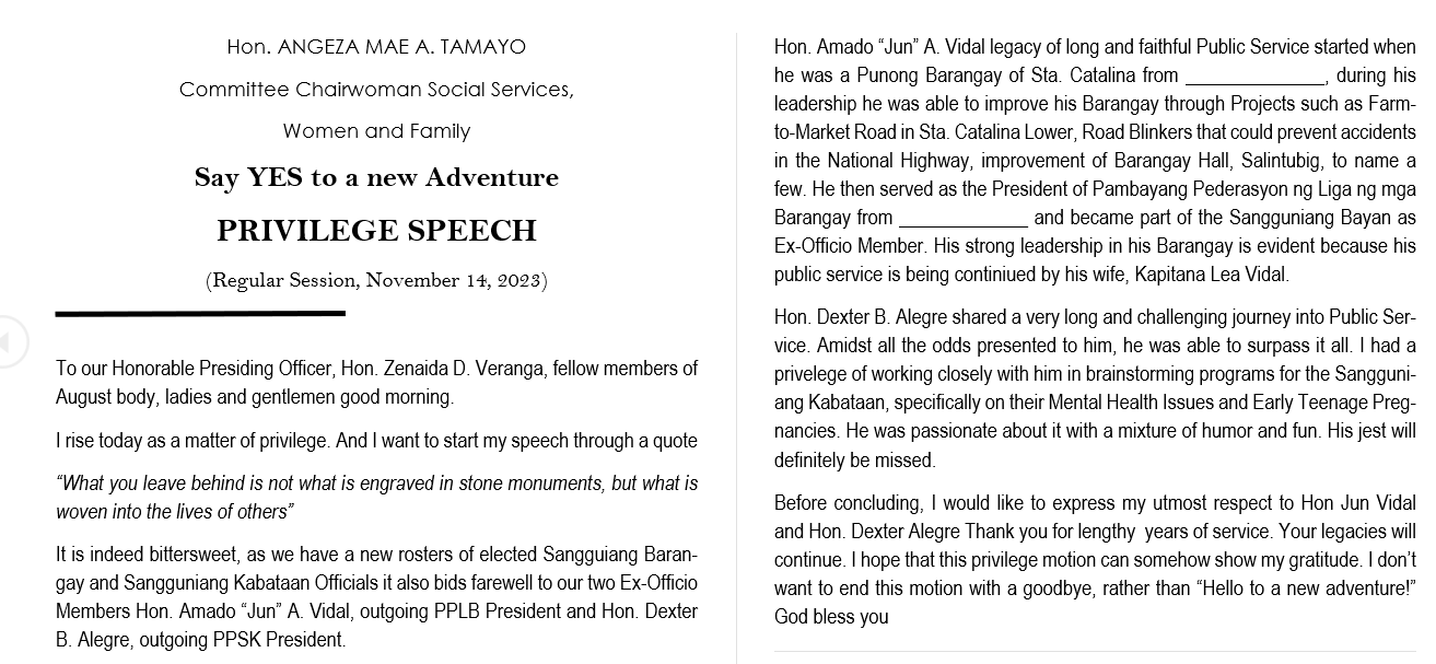 PRIVILEGE SPEECH
