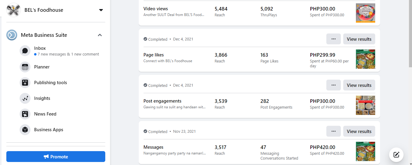 Bel's Food House FB Ads Result