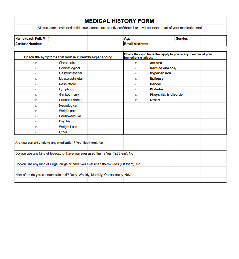 Medical History Form