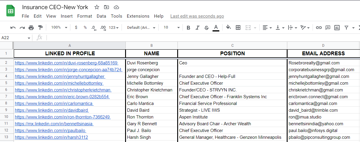 Insurance CEO-New York Leads