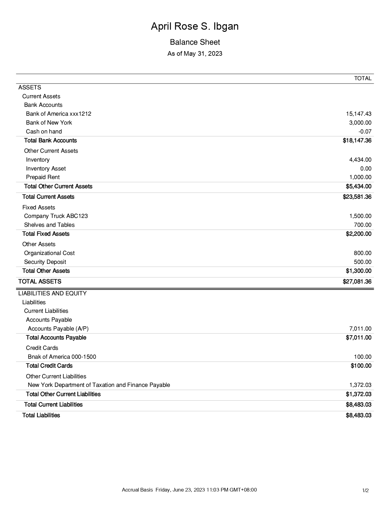 Balance sheet