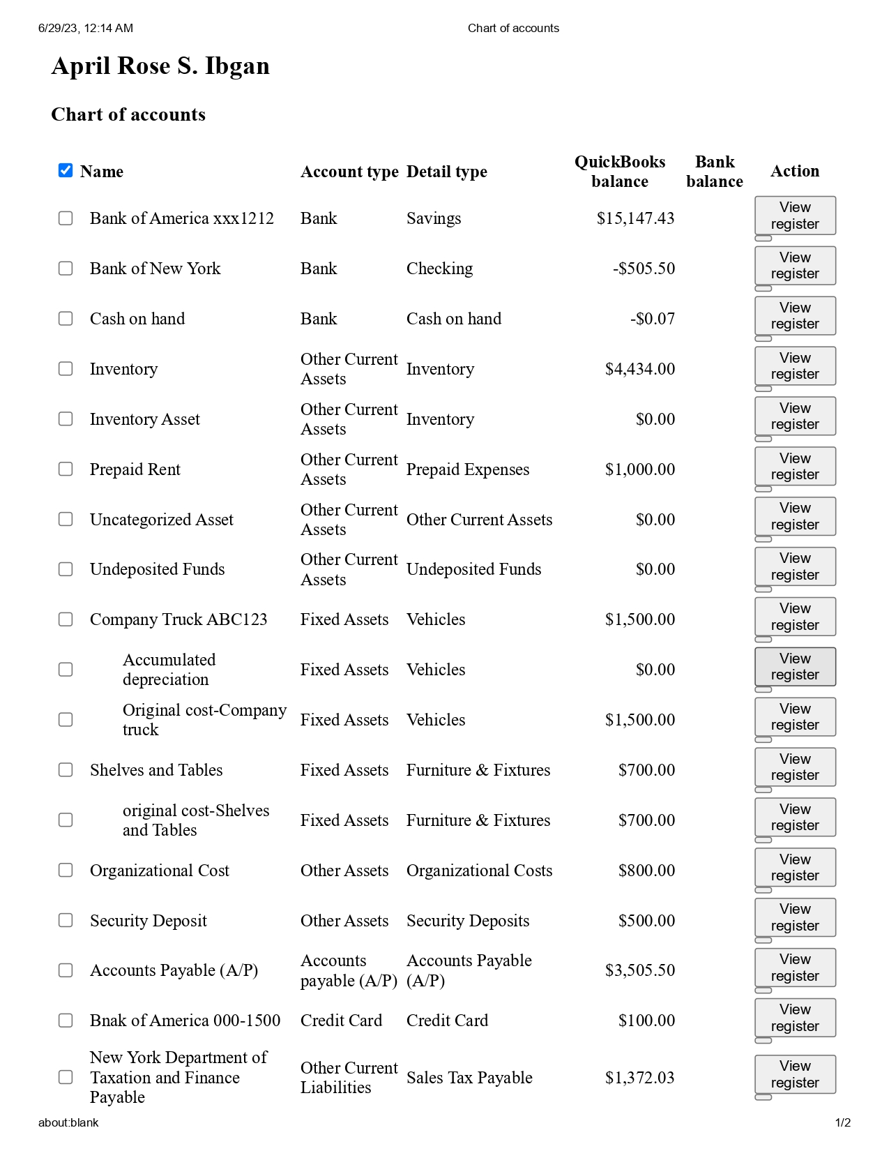 Chart of accounts