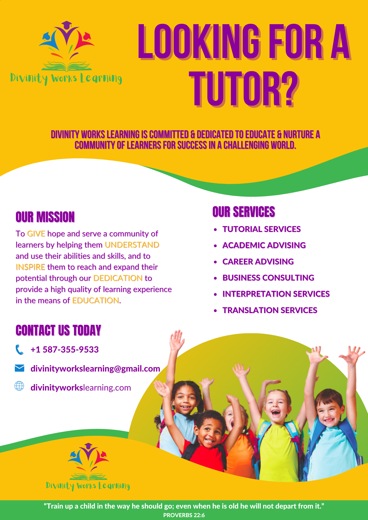 Divinity Works Learning is a tutoring centre located in Calgary, Alberta, Canada. Poster was created to introduce the center to the community.