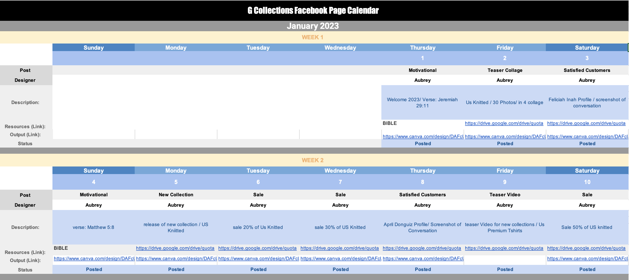 SMM Content Calendar
