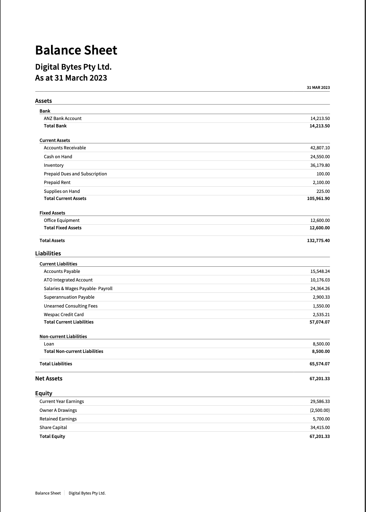 Xero Financial Report