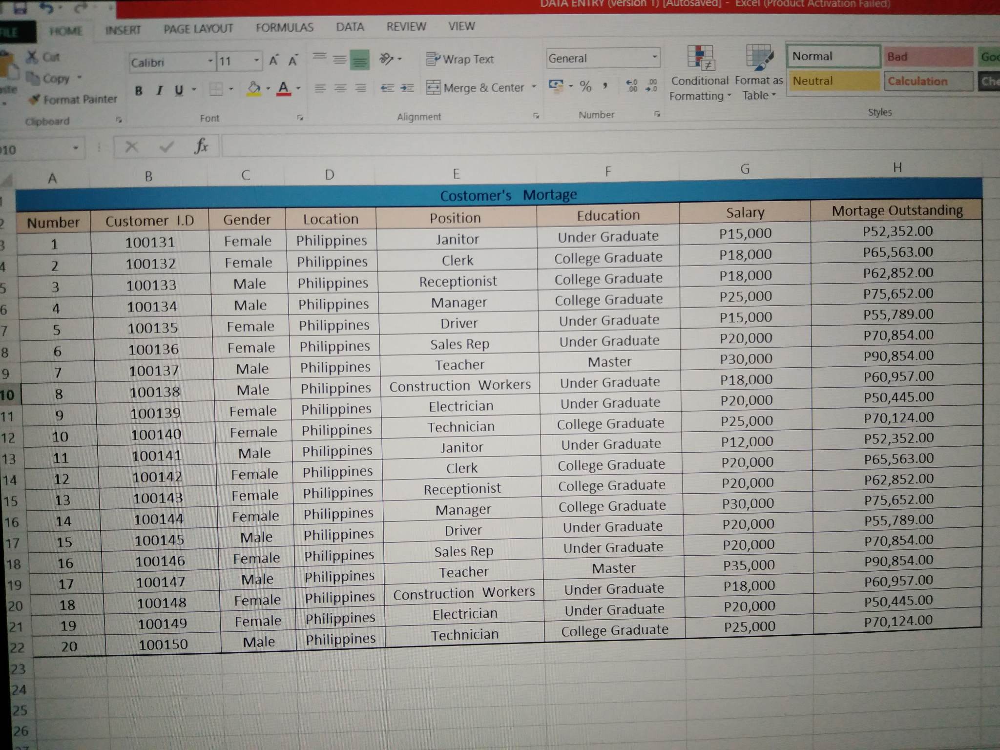 Customer's Mortage