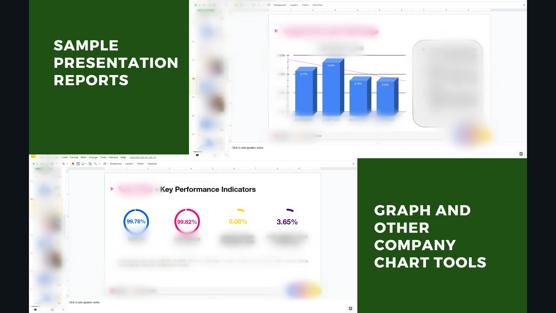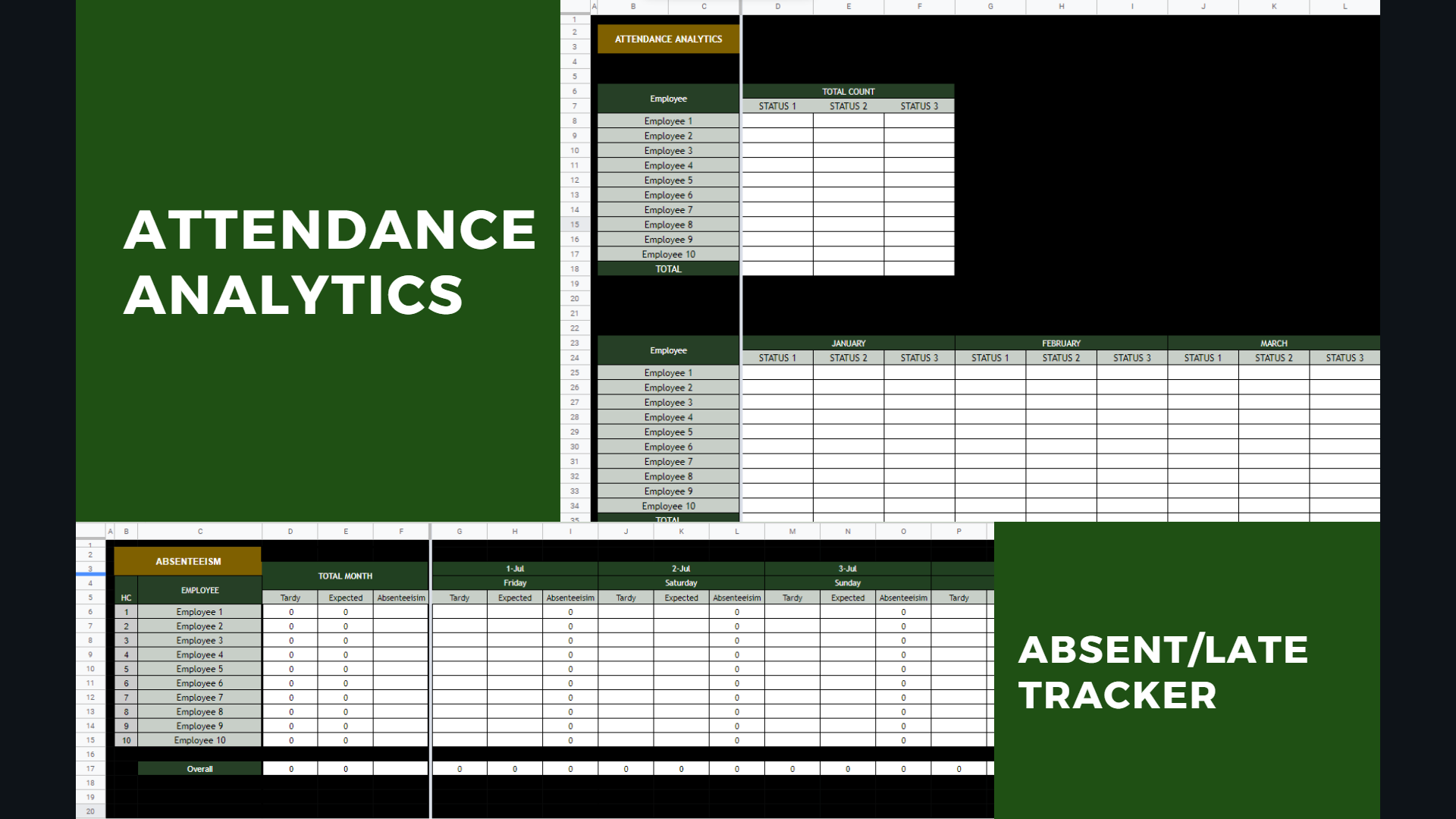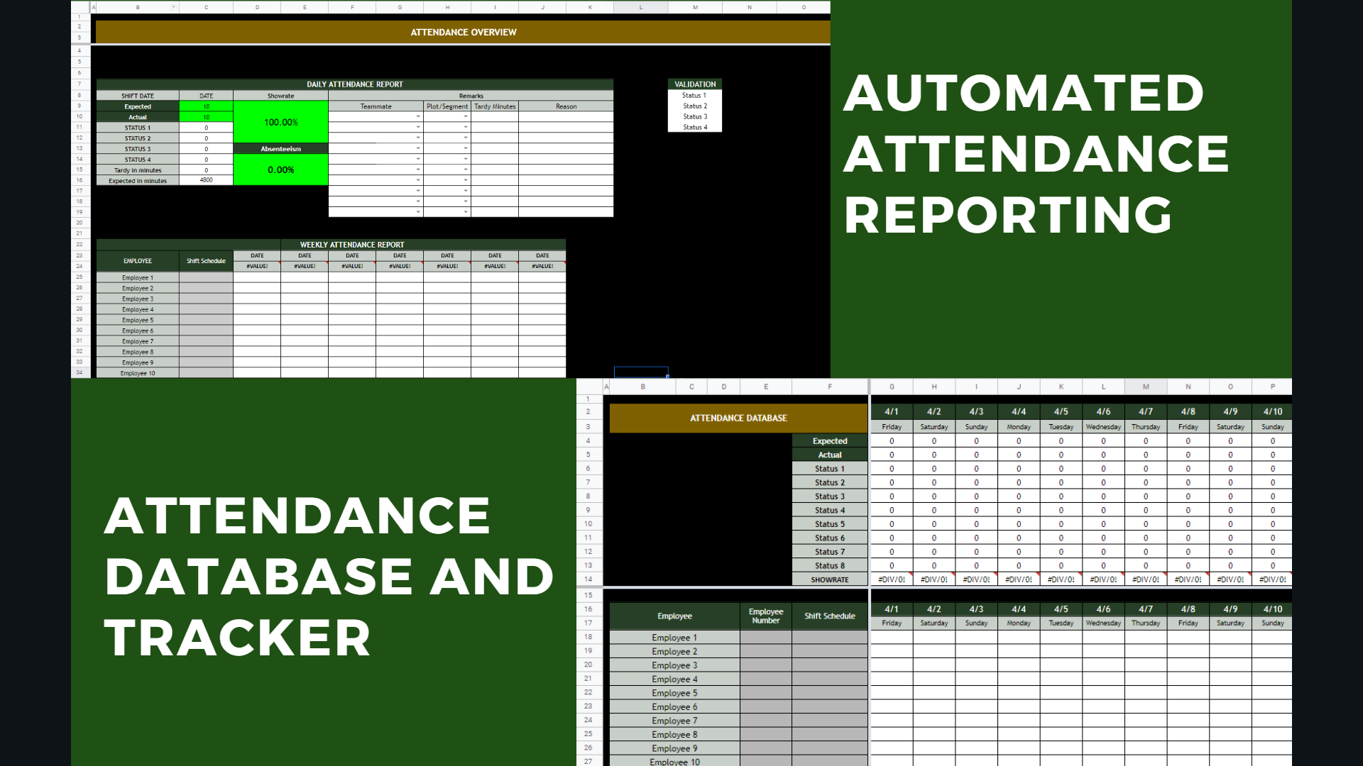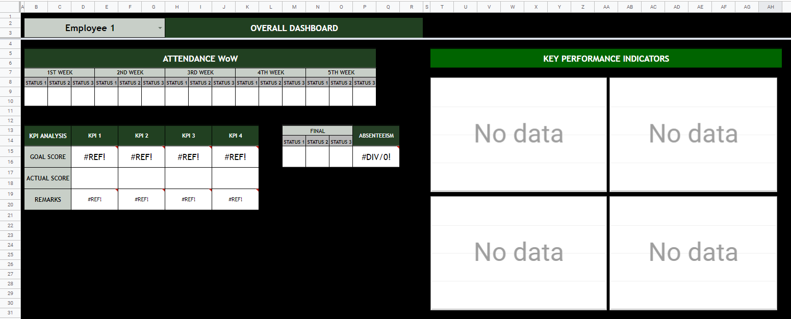 The dashboard inside the spreadsheet will automatically provide you with the data specific to the employee or category you wish to look at. This has a database that also gathered different sources in order to have 1 interface that will provide a summary of the information. This is highly used in presentation and for planning and development.