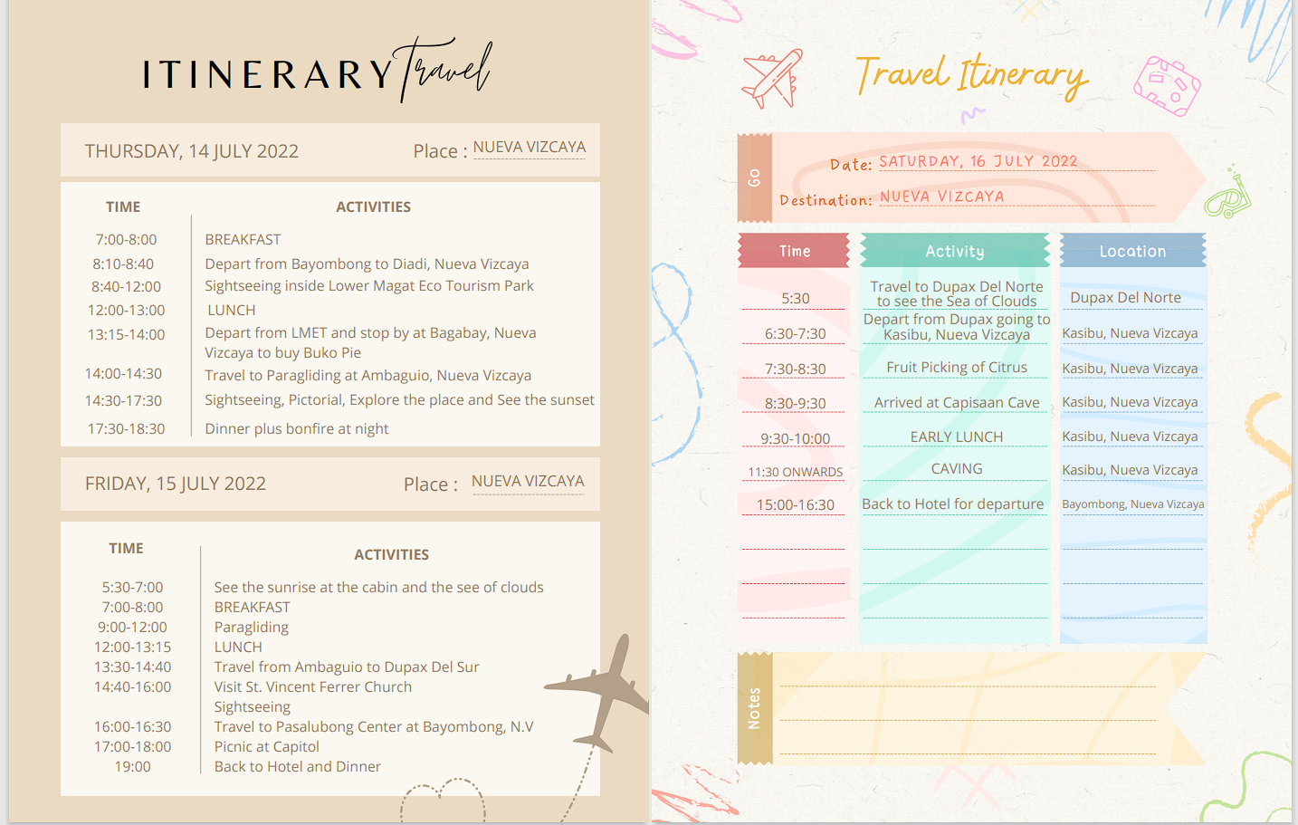 Travel Itinerary