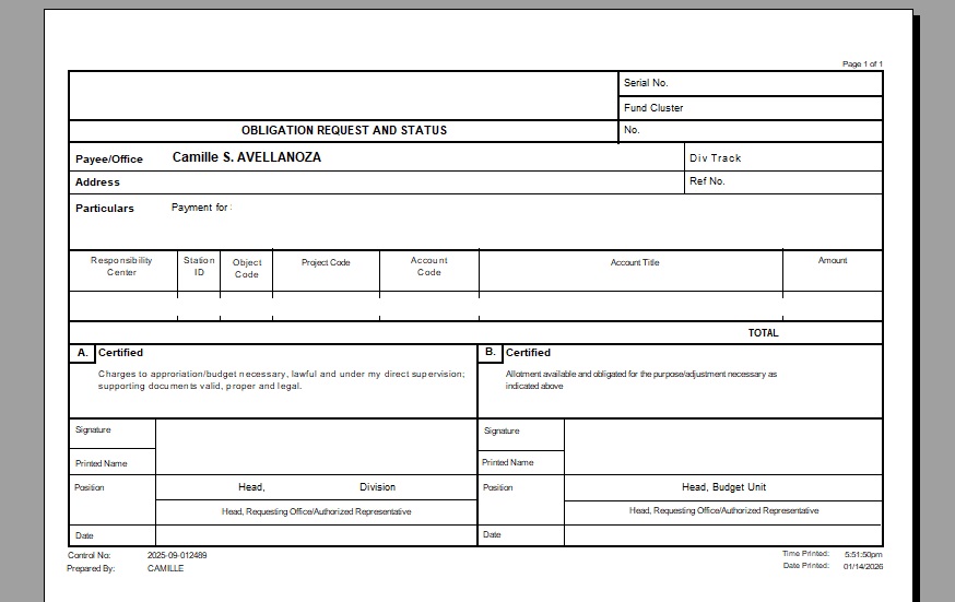 Obligation Request and Status Preparation