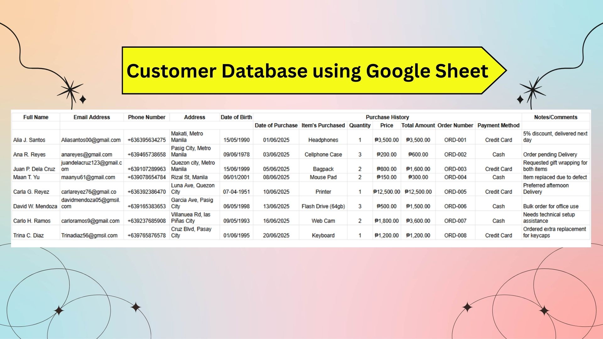 Customer Database using Google Sheets