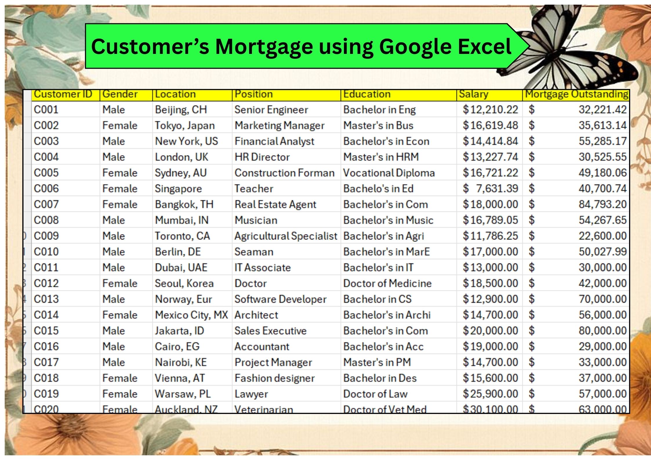 Customer's Mortgage in Google Excel