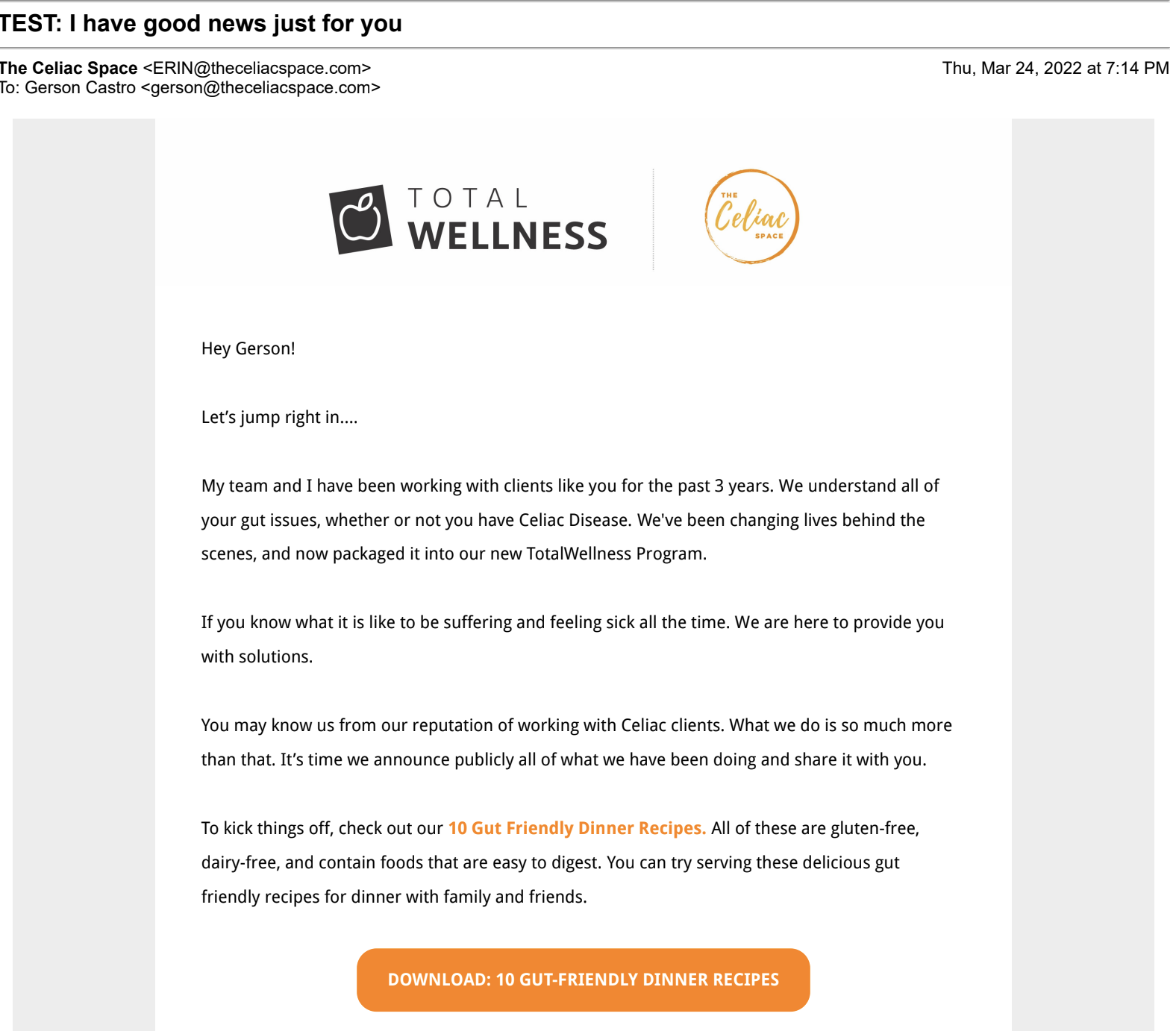 Total Wellness Email Introduction
