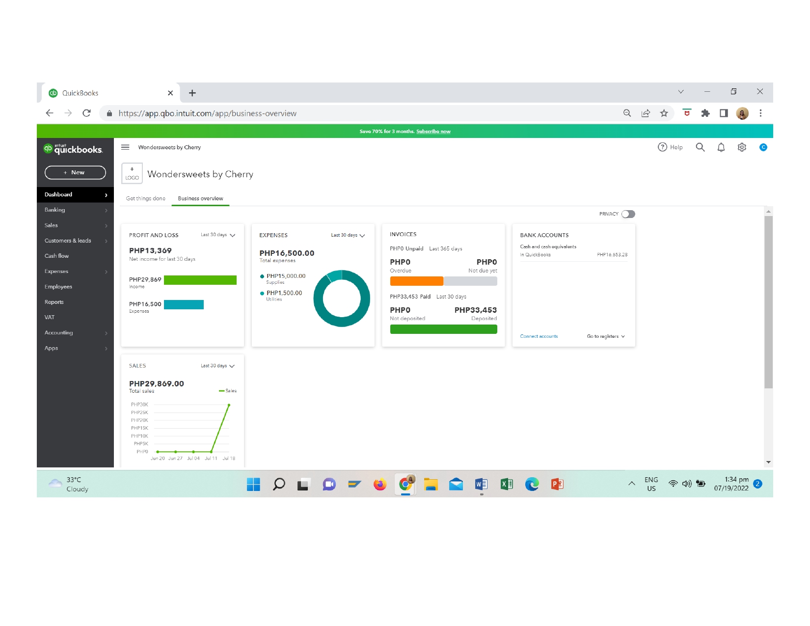 Sample Quickbooks Dashboard