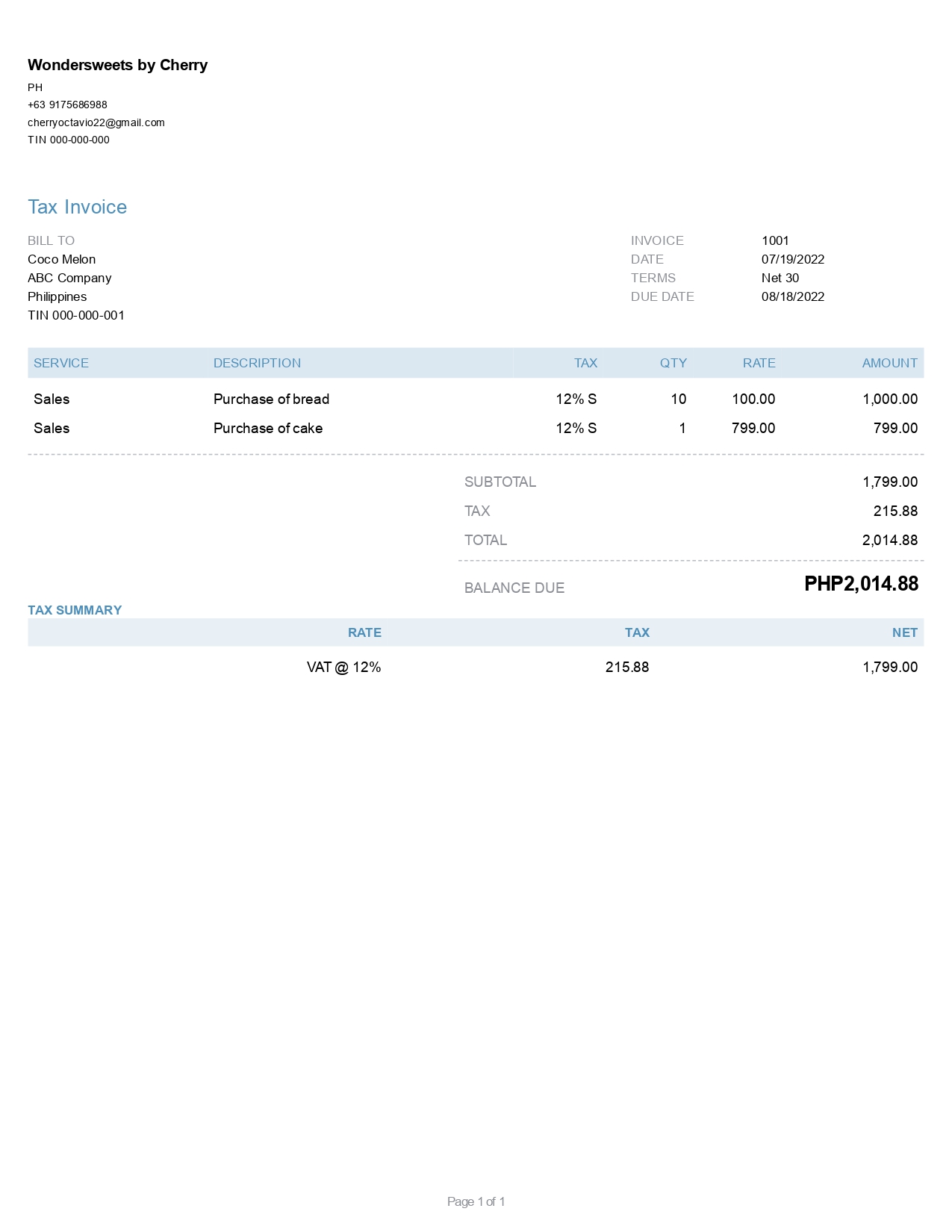 Sample Quickbooks Invoice