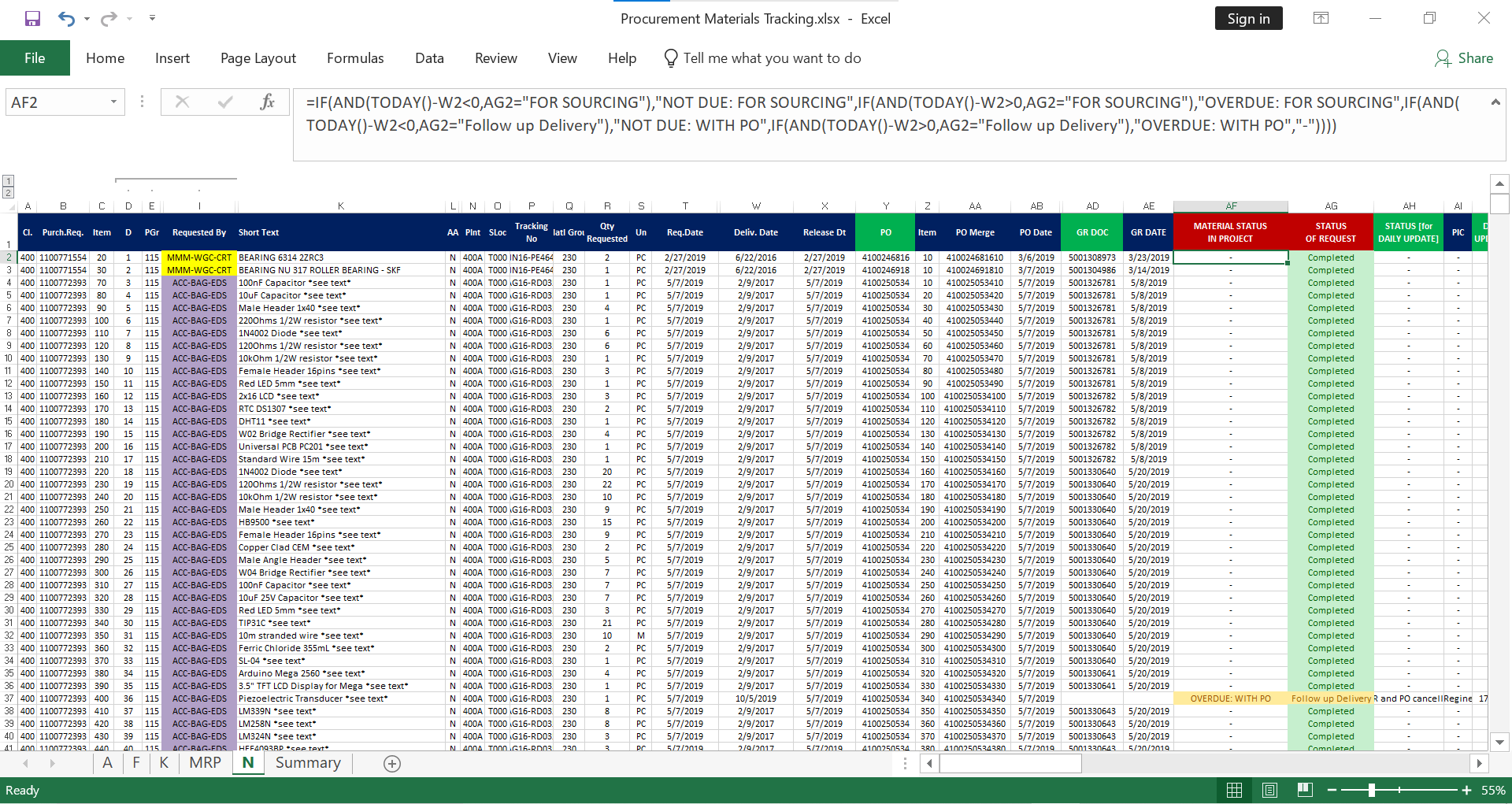 Procurement Materials Monitoring/Tracker
