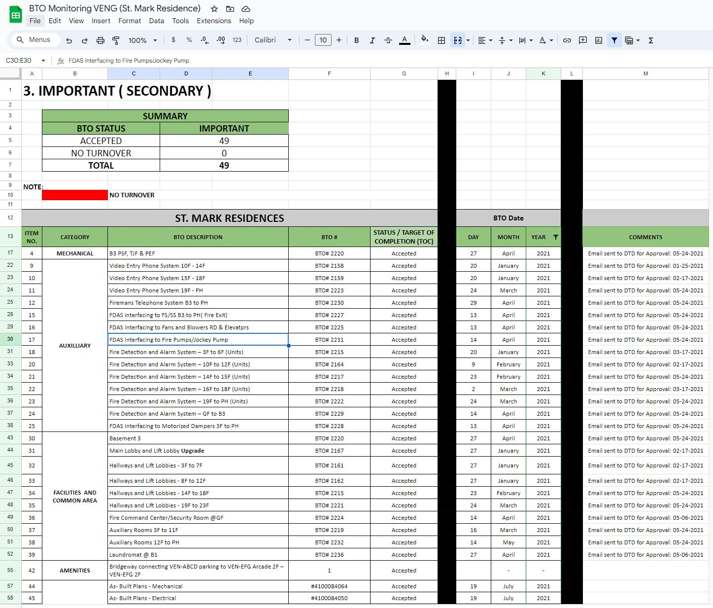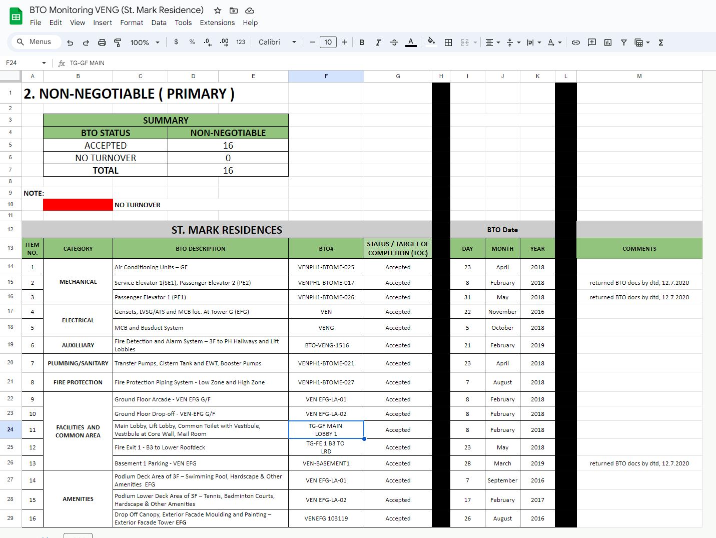 Building Turnover Updates