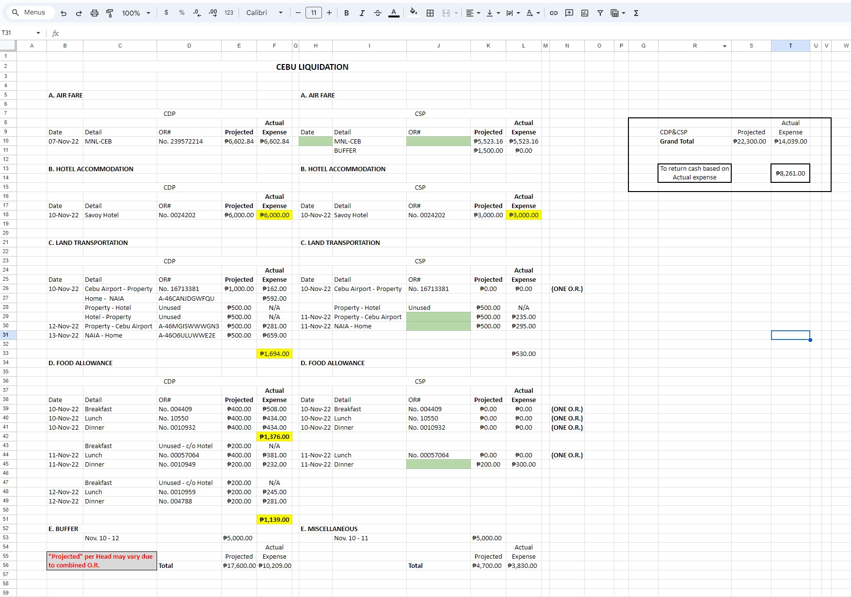 Liquidation Summary (Official Business Trip)