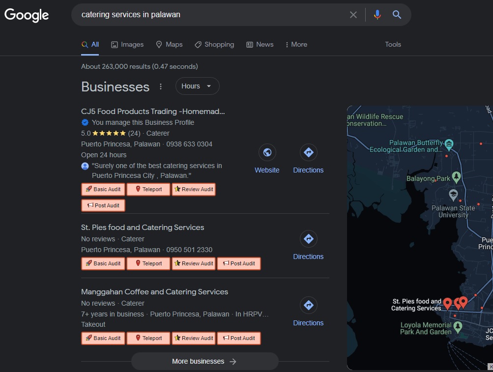 GMB/GBP SEO ( Rank no.1 on Keyword: "Catering Services in Puerto Princesa City")