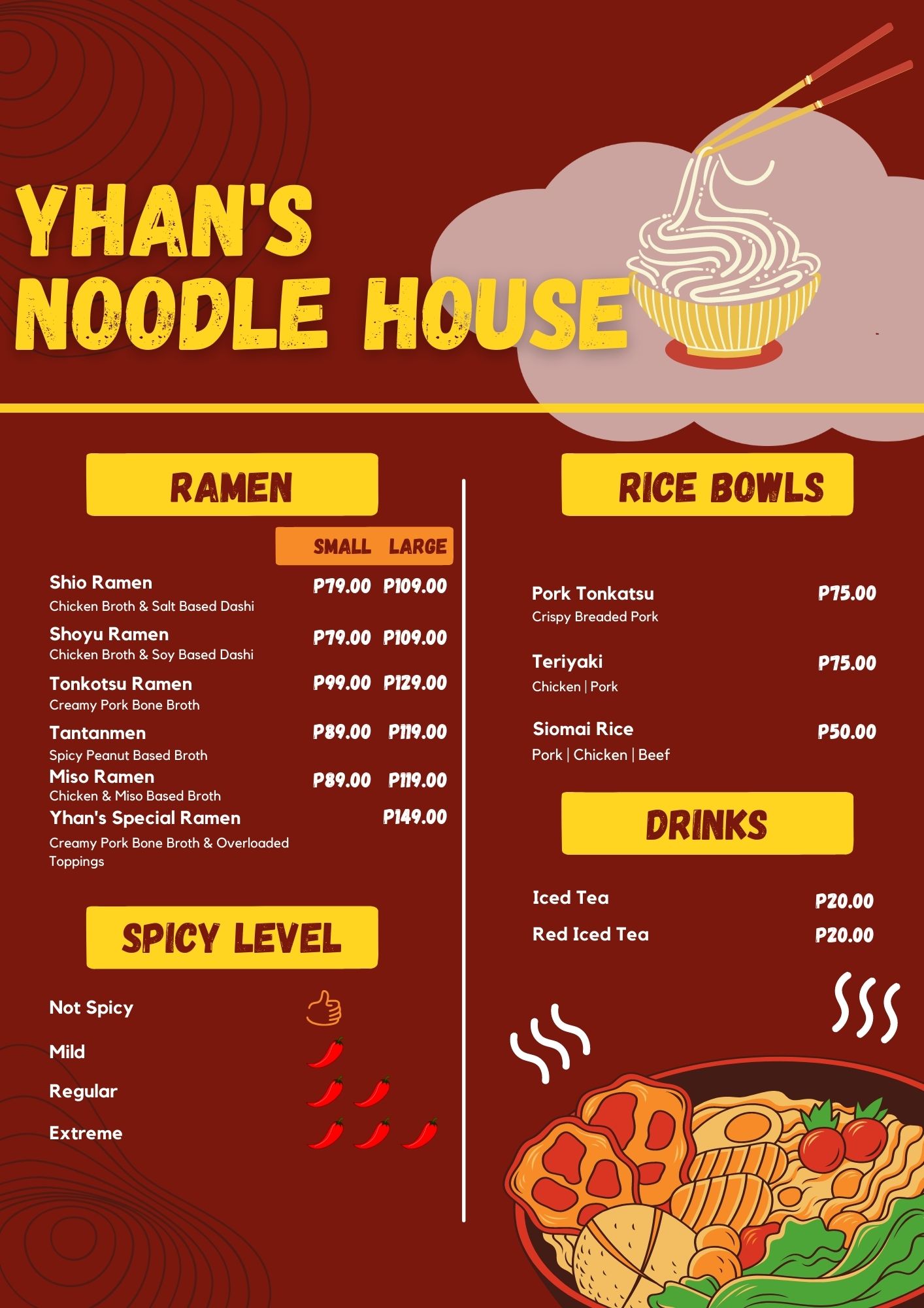 Sample Menu Design for Yhan's Noodle House.