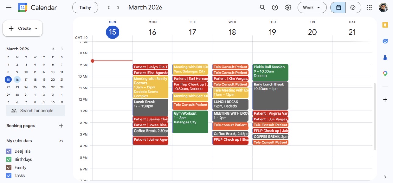 My Google Calendar work as Medical VA (Appointment Setter)