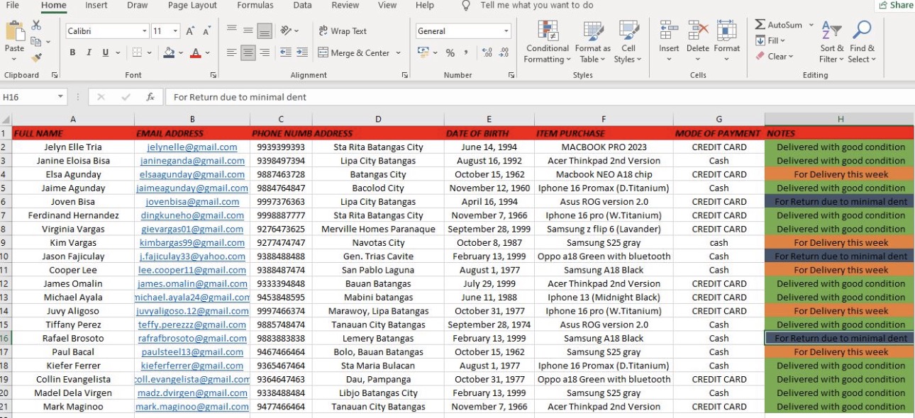 My Microsoft Excel work as Data Entry