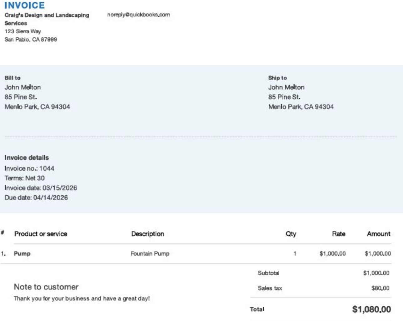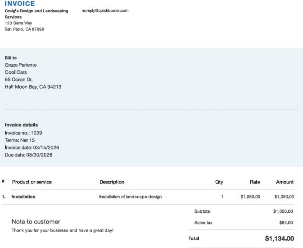 Quickbook - Sales Invoice