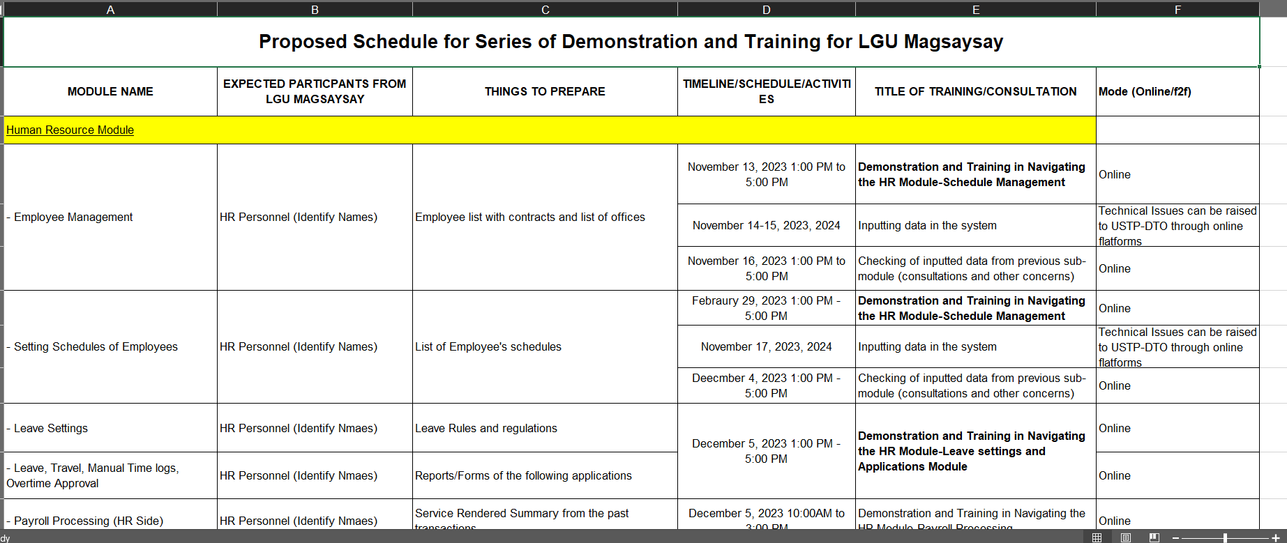 Here are some screenshots of my previous work as an administrative assistant. In this role, I handle data entry tasks, such as organizing data into Excel gathered by our IS researcher for their training schedule and updating contact information for each campus. Additionally, I ensure the accuracy and organization of the data to support efficient operations.