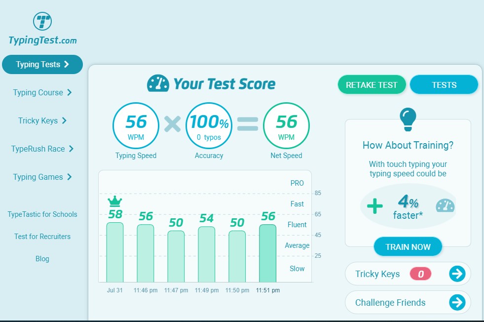 Typing Test Result