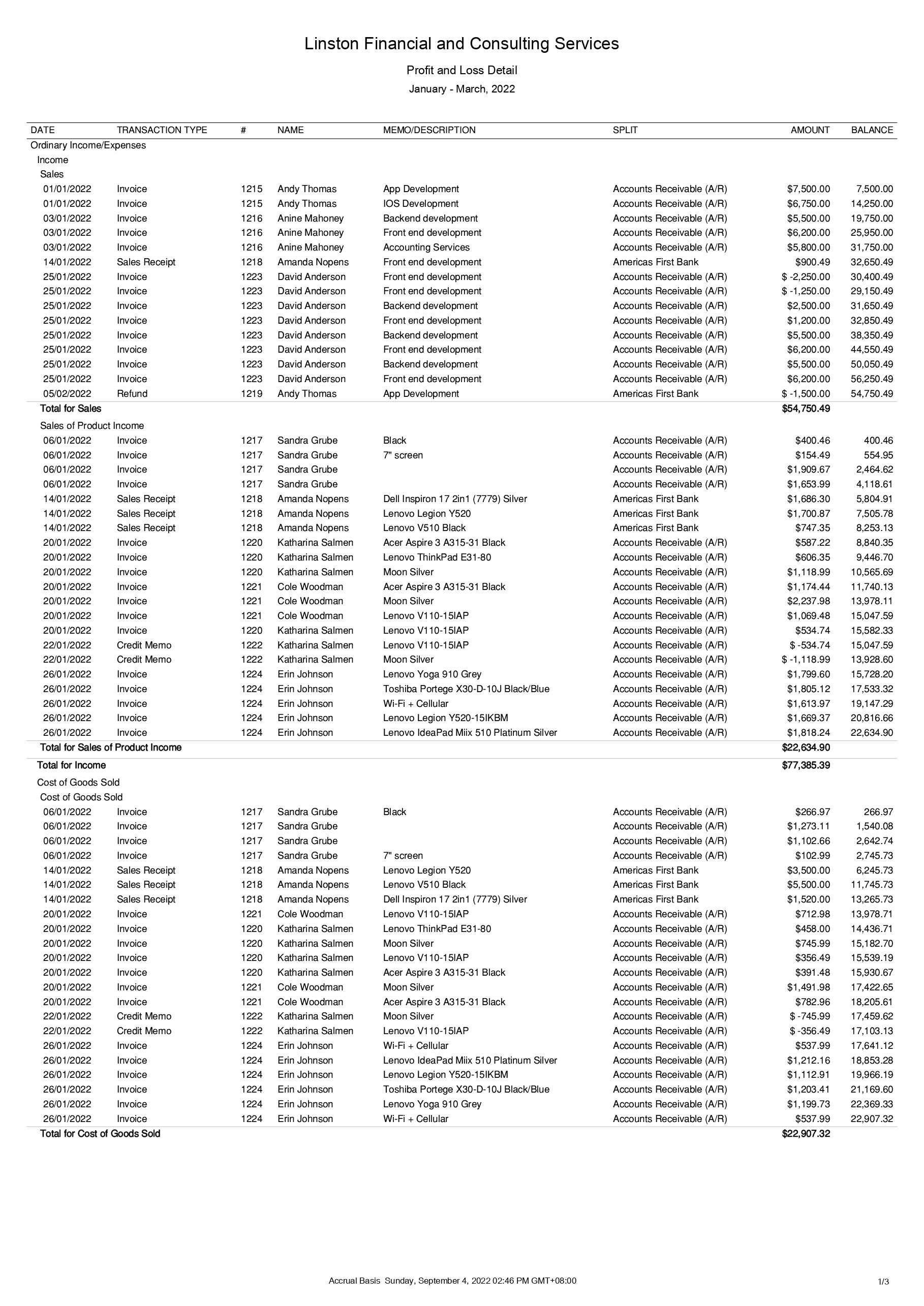 Profit and Loss Detail